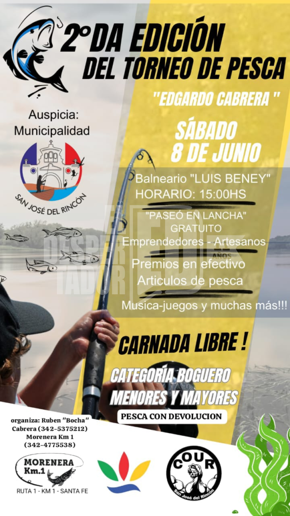 El sábado 8 de junio se llevará a cabo la segunda edición del Torneo de Pesca Edgardo Cabrera en San José del Rincón. El evento se realizará en el balneario Luis Beney a partir de las 15 horas y ofrecerá diversas actividades para los participantes y sus familias.