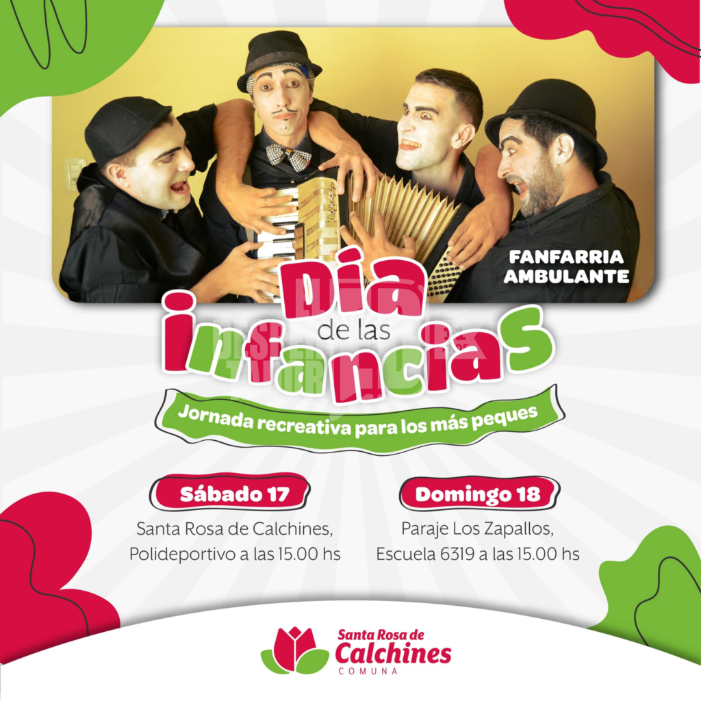 La comuna de Santa Rosa de Calchines organiza una jornada especial para conmemorar el Día de las Infancias este fin de semana. El evento se llevará a cabo el sábado 17 en el Polideportivo Comunal y el domingo 18 en la Escuela 6319 Gustavo Martínez Zuviría de Los Zapallos, comenzando a las 15:00 hs en ambos días.