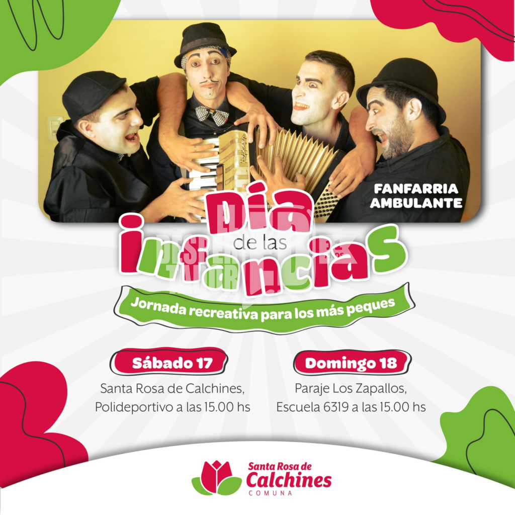 La comuna de Santa Rosa de Calchines organiza una jornada especial para conmemorar el Día de las Infancias este fin de semana. El evento se llevará a cabo el sábado 17 en el Polideportivo Comunal y el domingo 18 en la Escuela 6319 Gustavo Martínez Zuviría de Los Zapallos, comenzando a las 15:00 hs en ambos días.