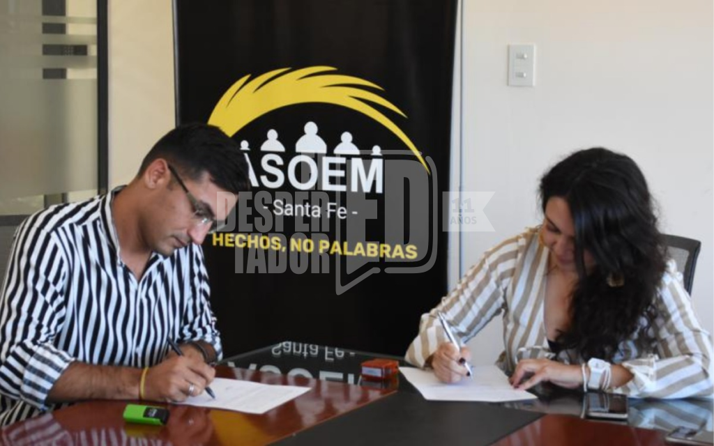 La secretaria Gremial de la ASOEM, Luisina Acevedo, y el intendente de San José del Rincón, Andrés Soperez, firmaron un importante acuerdo que establece la capacitación obligatoria en Ley Micaela para todos los funcionarios de la Administración Pública Municipal. El acto de signatura se llevó a cabo, esta mañana, en la sede sindical.