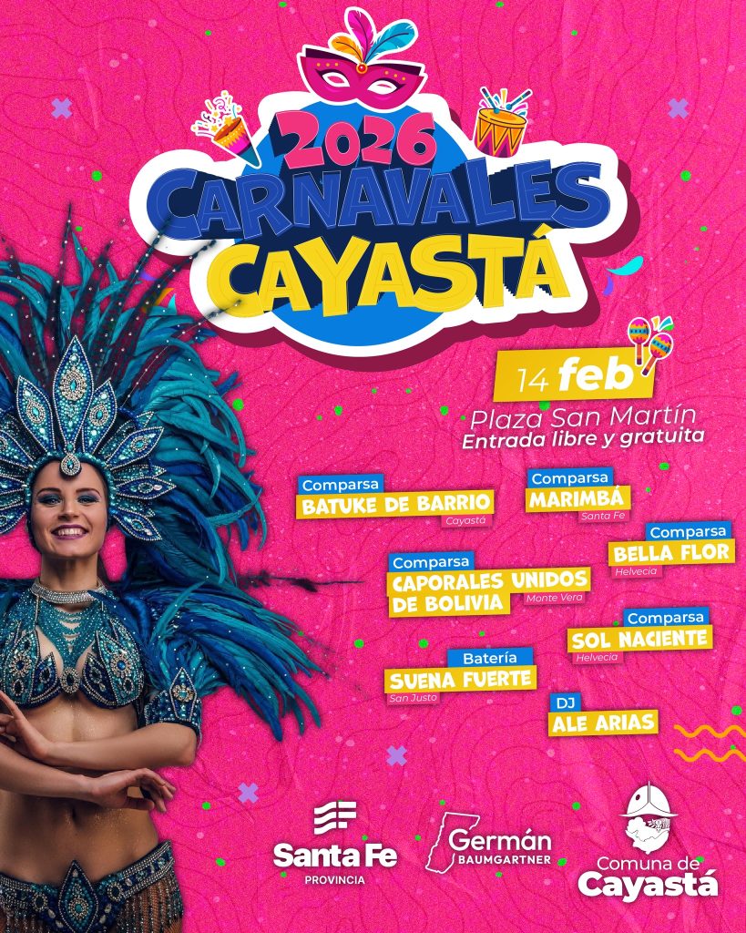El próximo 14 de febrero, en el marco del fin de semana largo, Cayastá vivirá los Carnavales 2026 con una propuesta pensada para toda la familia. El evento se desarrollará en la Plaza San Martín y contará con entrada libre y gratuita.