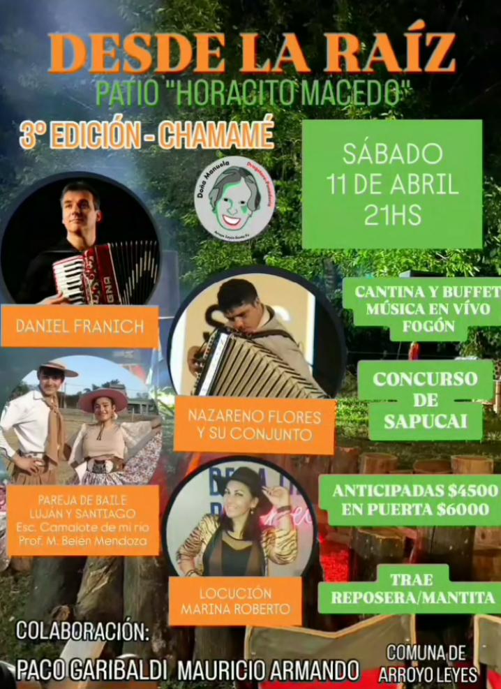 La localidad de Arroyo Leyes se prepara para vivir una nueva edición de “Desde la Raíz”, el evento que celebra la música y las tradiciones del litoral. La tercera edición tendrá lugar este sábado 11 de abril desde las 21.00 en el tradicional espacio Doña Manuela, ubicado sobre la Ruta 1, en el kilómetro 13,5.