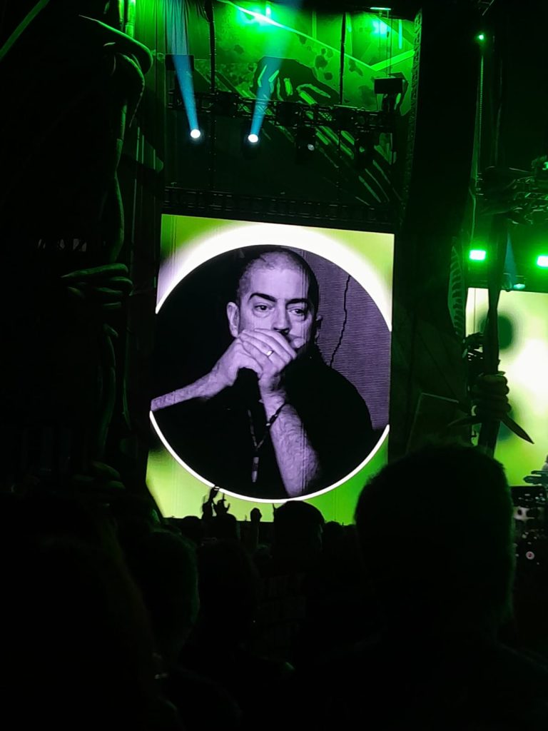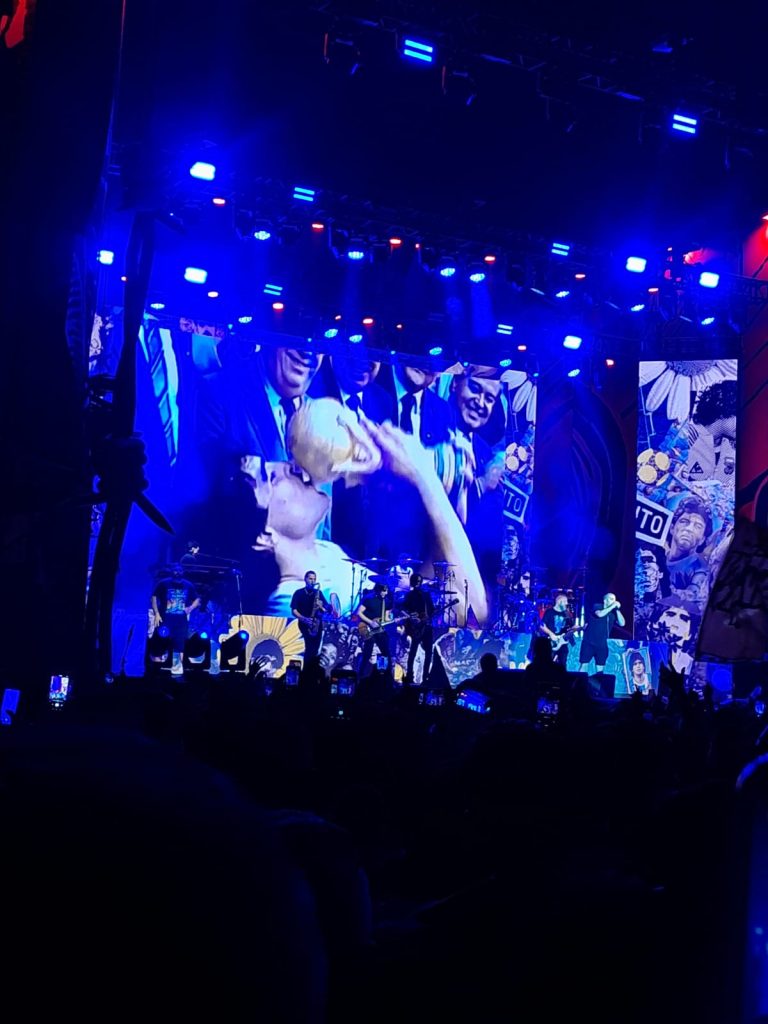 El recital comenzó con imágenes de Diego Maradona y la canción “Alma”, estableciendo desde el inicio un clima cargado de emotividad.